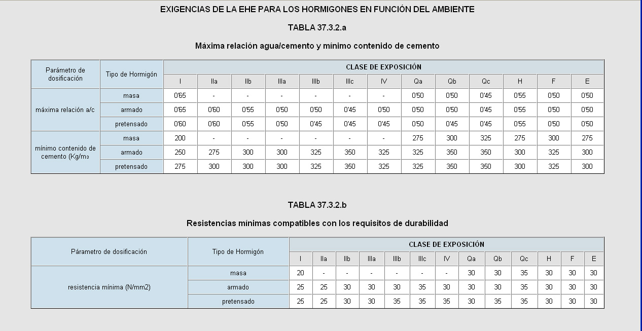 Exigencias de la Ehe para los hormigones en función del ambiente